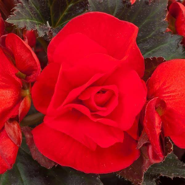 La série se caractérise par un feuillage foncé frappant qui offre un beau contraste avec des masses de petites fleurs doubles.